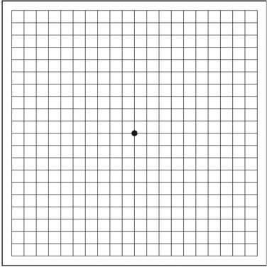 異常に早く気づくためには、下の「アムスラーチャート」を活用し、ゆがみがないか、見えないところはないかのセルフチェックが有効です。